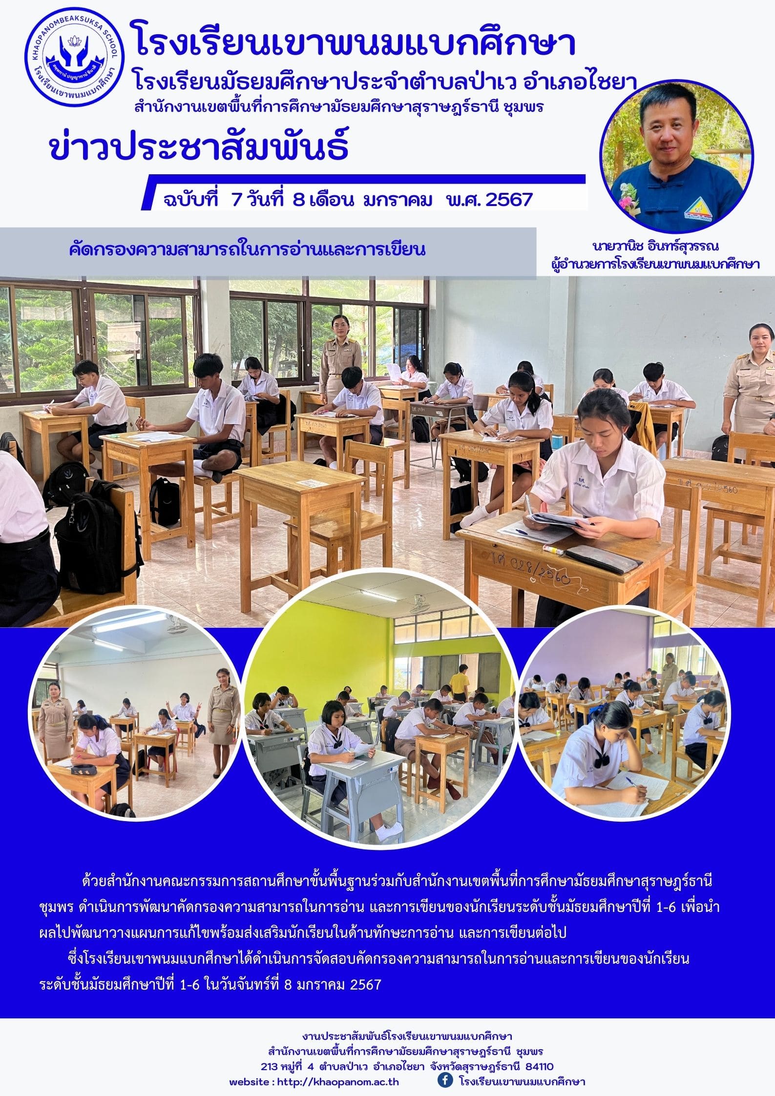 ด้วยสำนักงานคณะกรรมการสถานศึกษาขั้นพื้นฐานร่วมกับสำนักงานเขตพื้นที่การศึกษามัธยมศึกษาสุราษฎร์ธานี ชุมพร ดำเนินการพัฒนาคัดกรองความสามารถในการอ่าน และการเขียนของนักเรียนระดับชั้นมัธยมศึกษาปีที่ 1-6 เพื่อนำผลไปพัฒนาวางแผนการแก้ไขพร้อมส่งเสริมนักเรียนในด้านทั