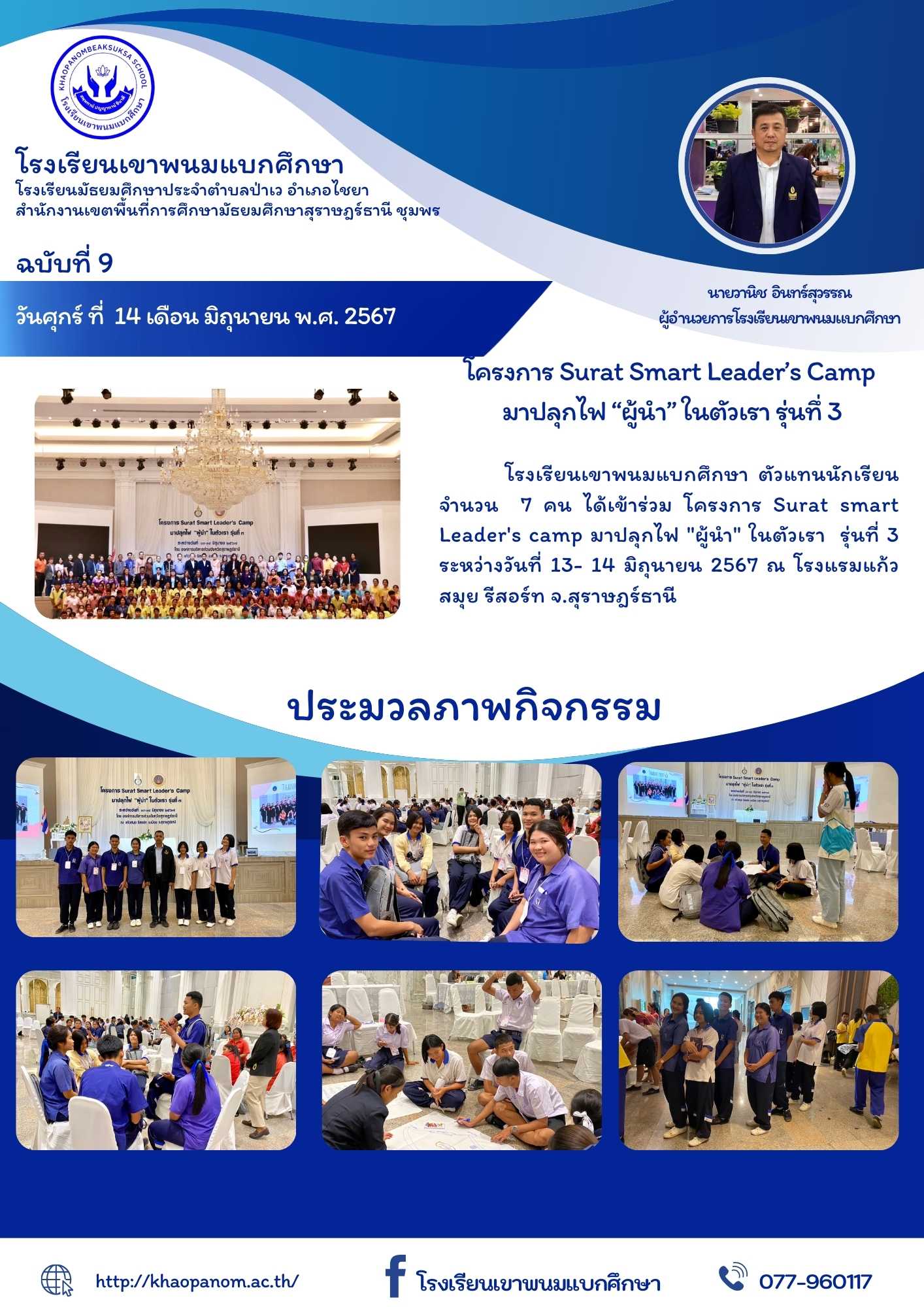 โรงเรียนเขาพนมแบกศึกษา ตัวแทนนักเรียน จำนวน 7 คน ได้เข้าร่วม โครงการ Surat smart Leader's camp มาปลุกไฟ