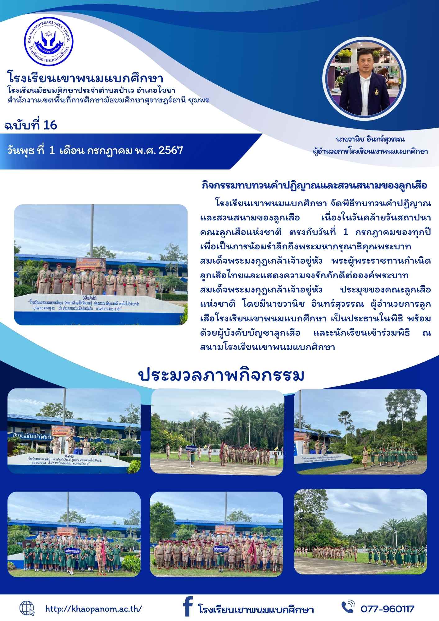 โรงเรียนเขาพนมแบกศึกษา จัดพิธีทบทวนคำปฏิญาณและสวนสนามของลูกเสือ เนื่องในวันคล้ายวันสถาปนาคณะลูกเสือแห่งชาติ ตรงกับวันที่ 1 กรกฎาคมของทุกปี เพื่อเป็นการน้อมรำลึกถึงพระมหากรุณาธิคุณพระบาทสมเด็จพระมงกุฎเกล้าเจ้าอยู่หัว พระผู้พระราชทานกำเนิดลูกเสือไทยและแสดง