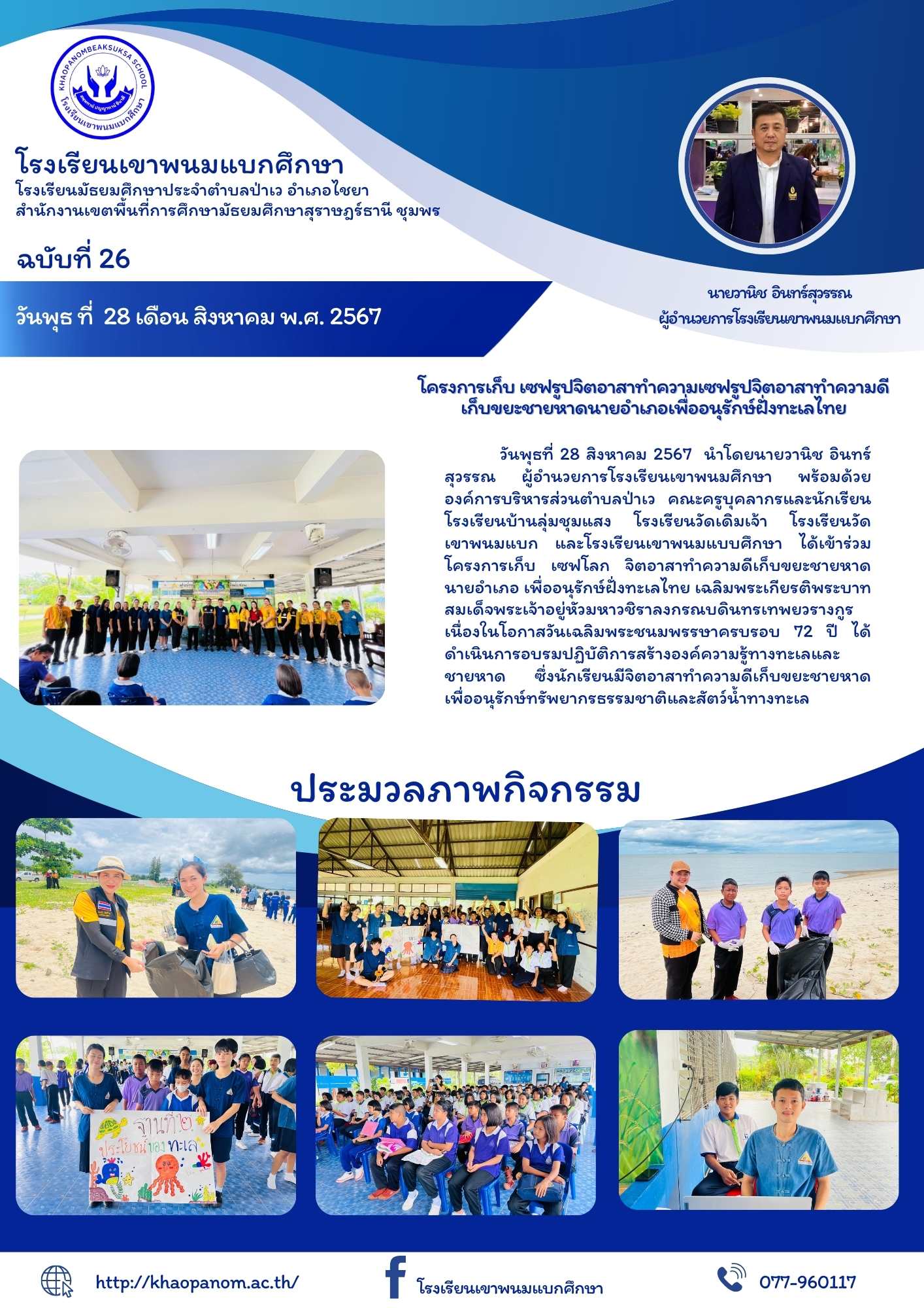 วันพุธที่ 28 สิงหาคม 2567 นำโดยนายวานิช อินทร์สุวรรณ ผู้อำนวยการโรงเรียนเขาพนมศึกษา พร้อมด้วย องค์การบริหารส่วนตำบลป่าเว คณะครูบุคลากรและนักเรียน โรงเรียนบ้านลุ่มชุมแสง โรงเรียนวัดเดิมเจ้า โรงเรียนวัดเขาพนมแบก และโรงเรียนเขาพนมแบบศึกษา ได้เข้าร่วมโครงการ