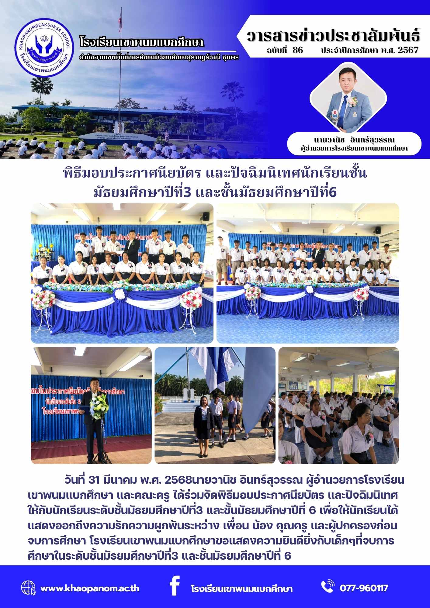พิธีมอบประกาศนียบัตร และปัจฉิมนิเทศนักเรียนชั้นมัธยมศึกษาปีที่3 และชั้นมัธยมศึกษาปีที่6