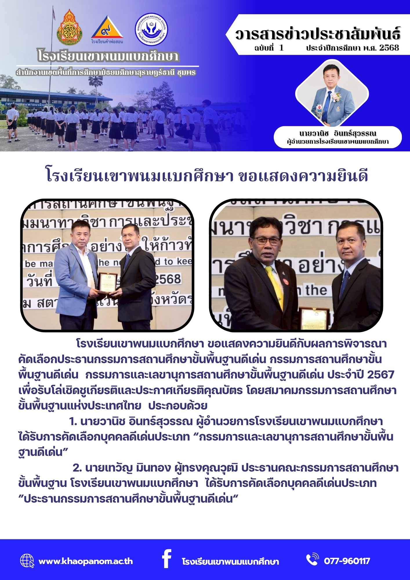 ขอแสดงความยินดีกับผลการพิจารณาคัดเลือกประธานกรรมการสถานศึกษาขั้นพื้นฐานดีเด่น กรรมการสถานศึกษาขั้น พื้นฐานดีเด่น กรรมการและเลขานุการสถานศึกษาขั้นพื้นฐานดีเด่น ประจำปี 2567
