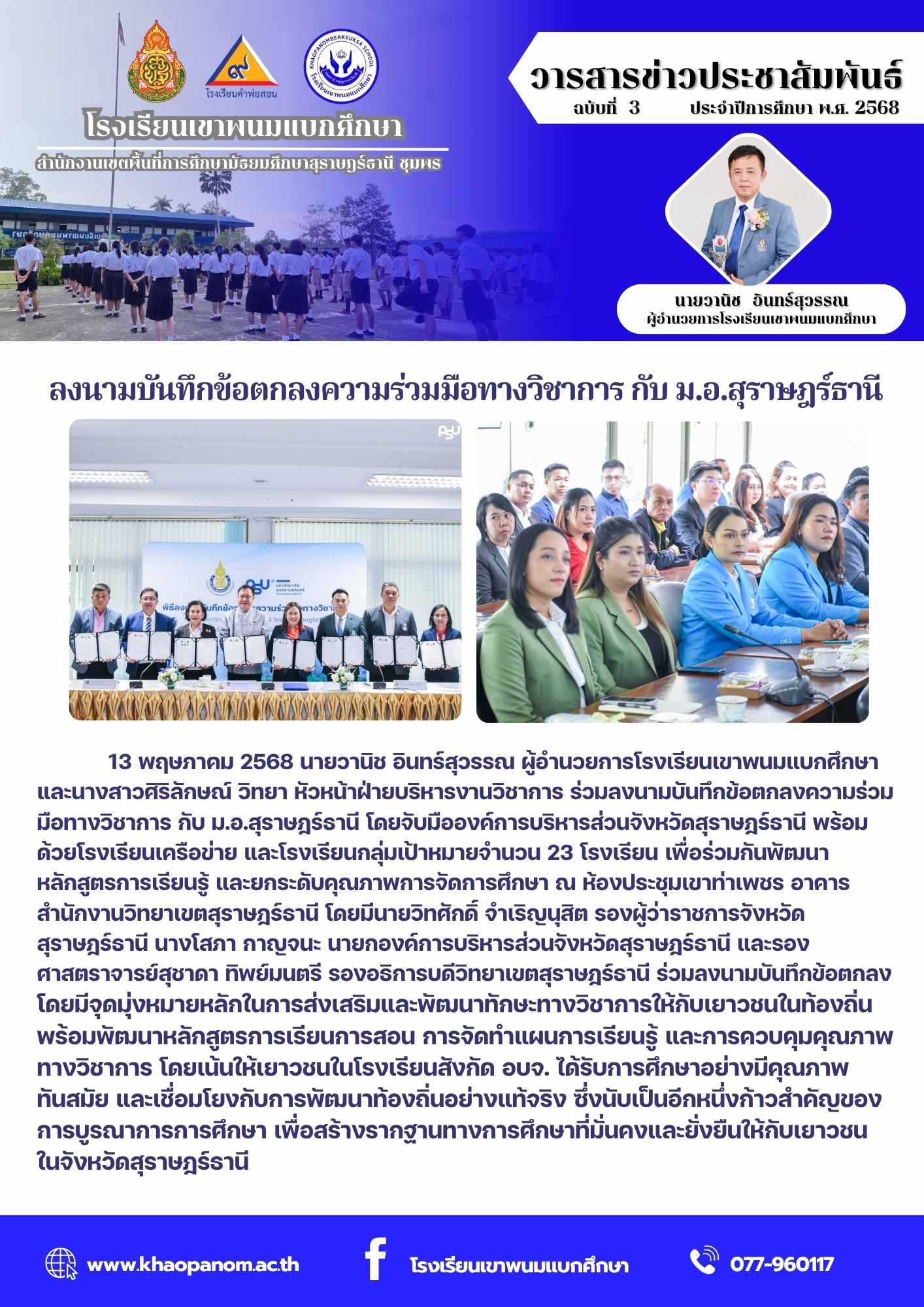 ลงนามบันทึกข้อตกลงความร่วมมือทางวิชาการ กับ ม.อ.สุราษฎร์ธานี